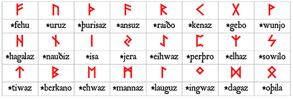 The different rune rows, depending on time period, are each referred to as a ‘futhark’ or ‘futhork’ due to the sound values of the first six characters (similarly to how we use the term ‘alphabet’ due to ‘alpha’ and ‘beta’ being the first two letters of the Greek alphabet). There are three primary historical rune rows, showing only minor variations in the forms of the individual characters over their history.
