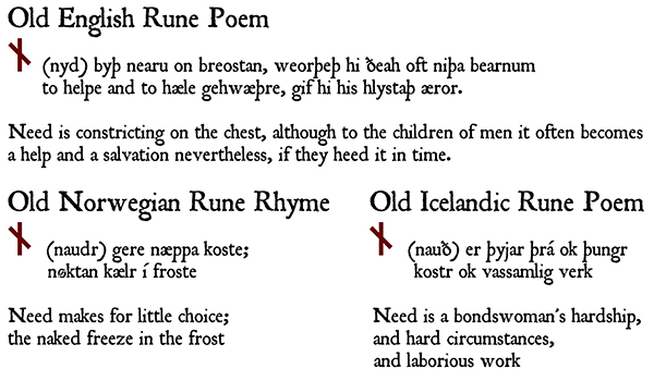Rûna is specific to the sacred and magical/operative semantic field, and the word predates the attachment of the concept to the characters that provide specific perspectives on it. Old English stæfr or Old Norse stafr – both meaning “stave” – were traditionally used to refer to the signs themselves, with their description as “runes” on runestones or in various pieces of lore being a primarily metaphorical association. Generally I will use the word ‘staves’ or ‘runestaves’ to refer to the characters themselves, and ‘runes’ when talking about the mysteries underlying and transcending them.